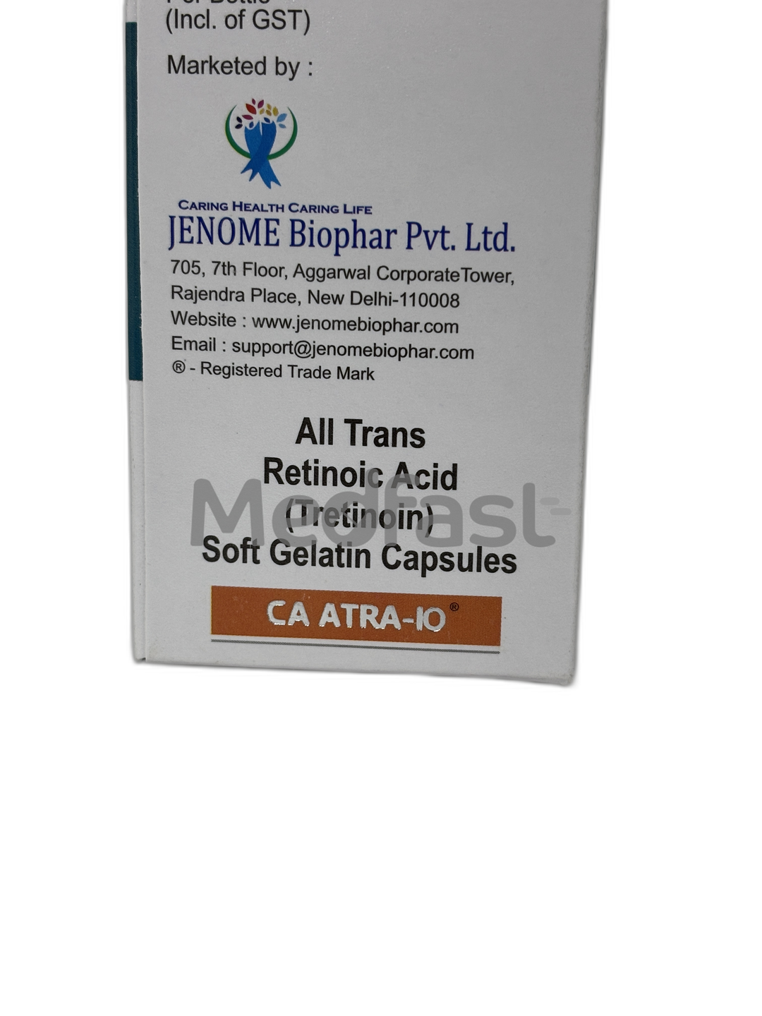 CA Atra 10mg capsule is an antineoplastic drug with an active ingredient called Tretinoin. It belongs to the medication class known as retinoids, similar to vitamin A. It is used to treat a kind of blood issue called acute promyelocytic leukemia which slow down the growth of diseased blood cells.