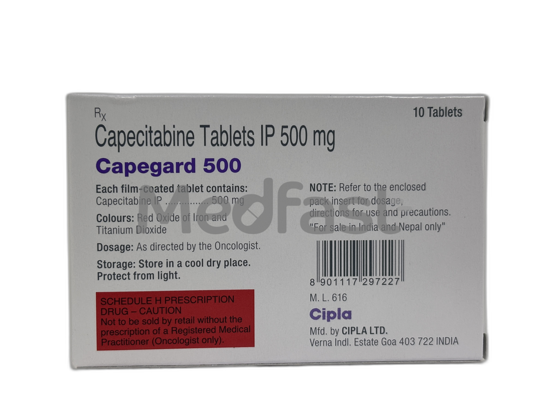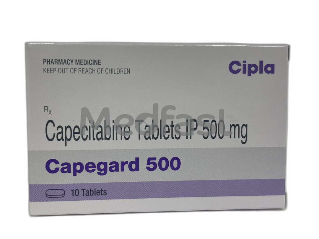 Capegard 500 Tablet is a medication primarily prescribed for the comprehensive treatment of various cancers, including those of the breast, colon, and rectum. This tablet may also be specifically utilized to address other medical conditions, as thoroughly determined by your attending physician. It is often used either alone as a monotherapy or in combination with some other medicine as an integral part of a chemotherapy regimen.