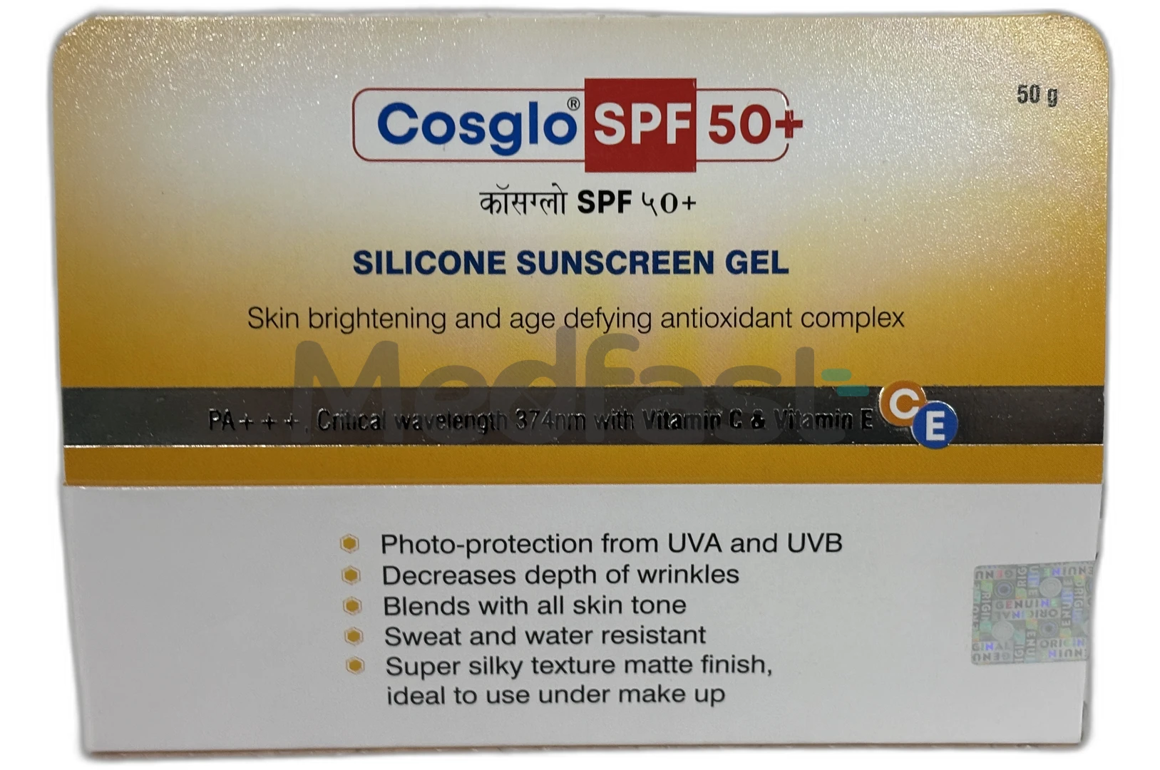 Enriched with vitamin C and vitamin E, the Cosglo SPF 50+ Silicone Sunscreen Gel not only nourishes the skin but also enhances protection against environmental aggressors.