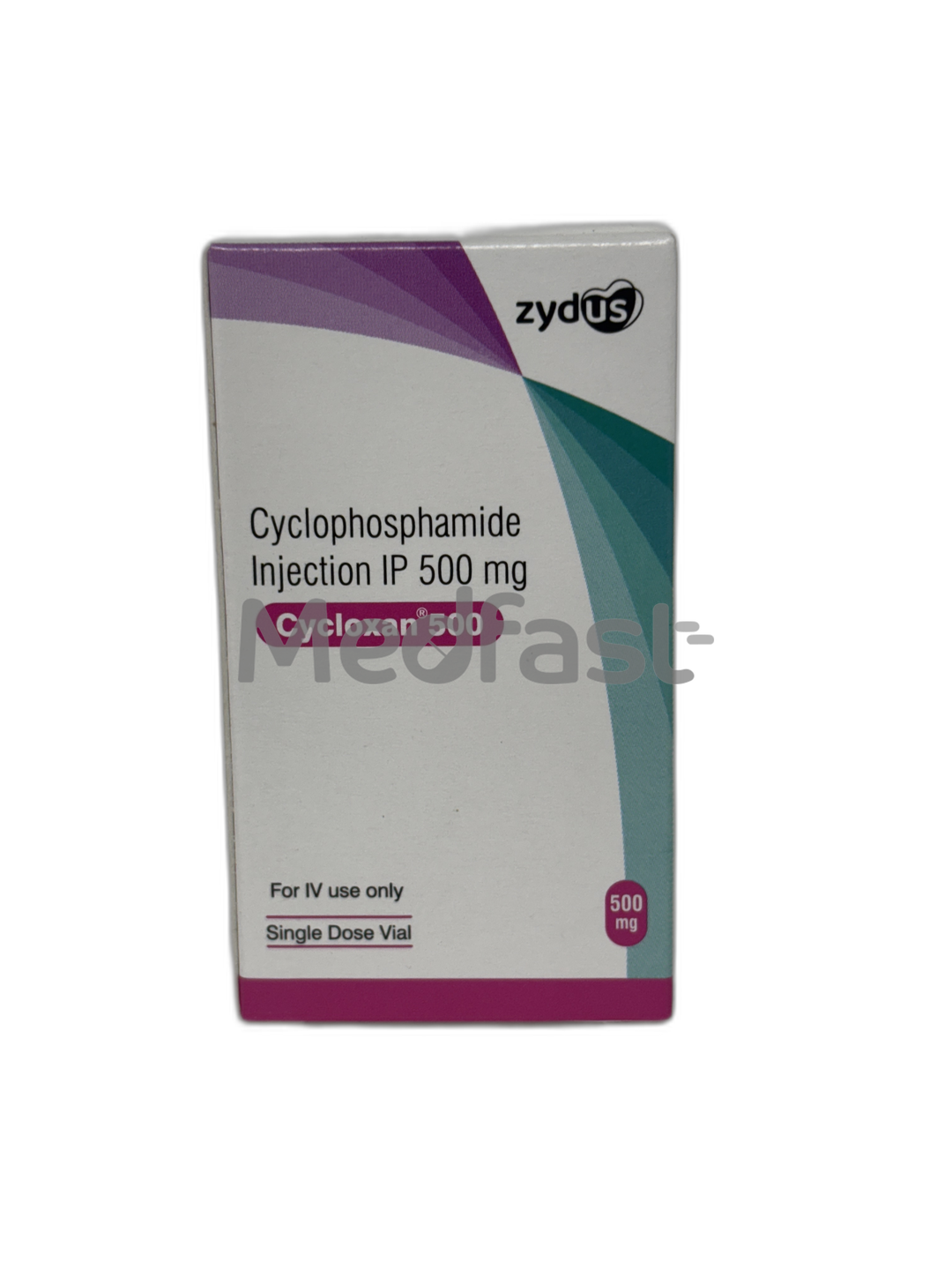 It is used to treat leukemias, neuroblastoma, ovarian cancer, retinoblastoma, and breast carcinoma. It can also treat Minimal Change Nephrotic syndrome in pediatric patients (kidney disease in which large quantities of protein are lost in urine). Cycloxan 500mg Injection is contraindicated in pregnancy, patients with acute infections, urinary tract infections, urinary outflow obstruction, and bone marrow disorders.