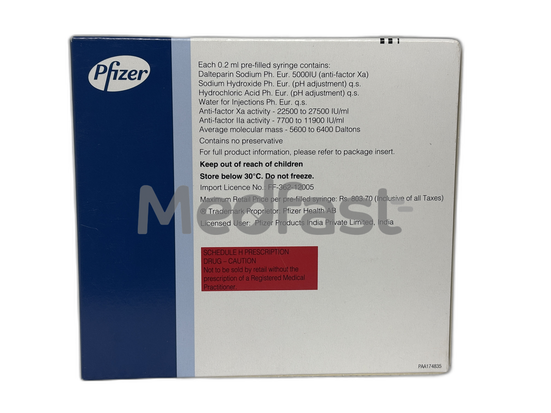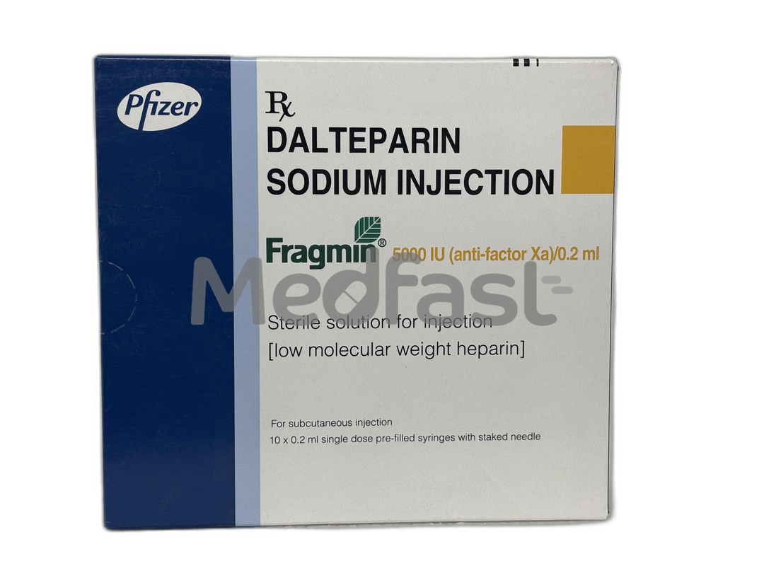 Fragmin 5000IU Injection is known as an anticoagulant and is used to prevent harmful blood clots. It stops existing clots from getting any bigger and stops new ones from forming in the legs, lungs, brain, or heart. This can help prevent acute coronary syndrome, deep vein thrombosis, and pulmonary embolism.