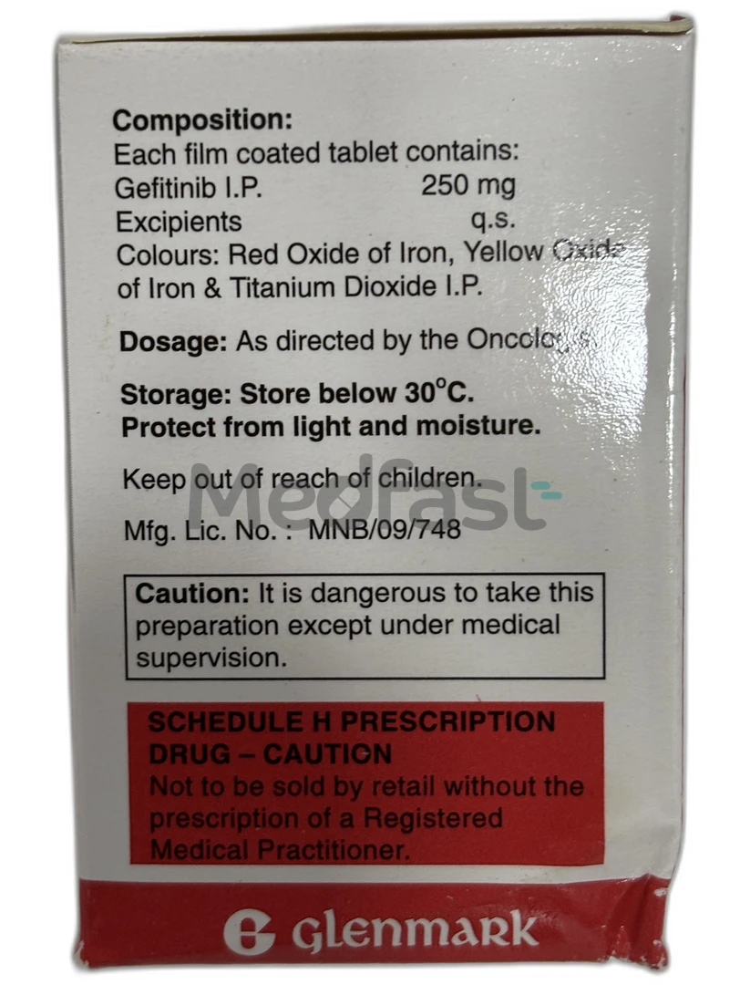 GEFTIB 250MG TABLET contains ‘Gefitinib’, which is part of a class of medications known as ‘kinase inhibitors’. It functions by inhibiting the activity of an abnormal protein that promotes the proliferation of cancerous cells. This mechanism helps to prevent the spread of cancerous cells.