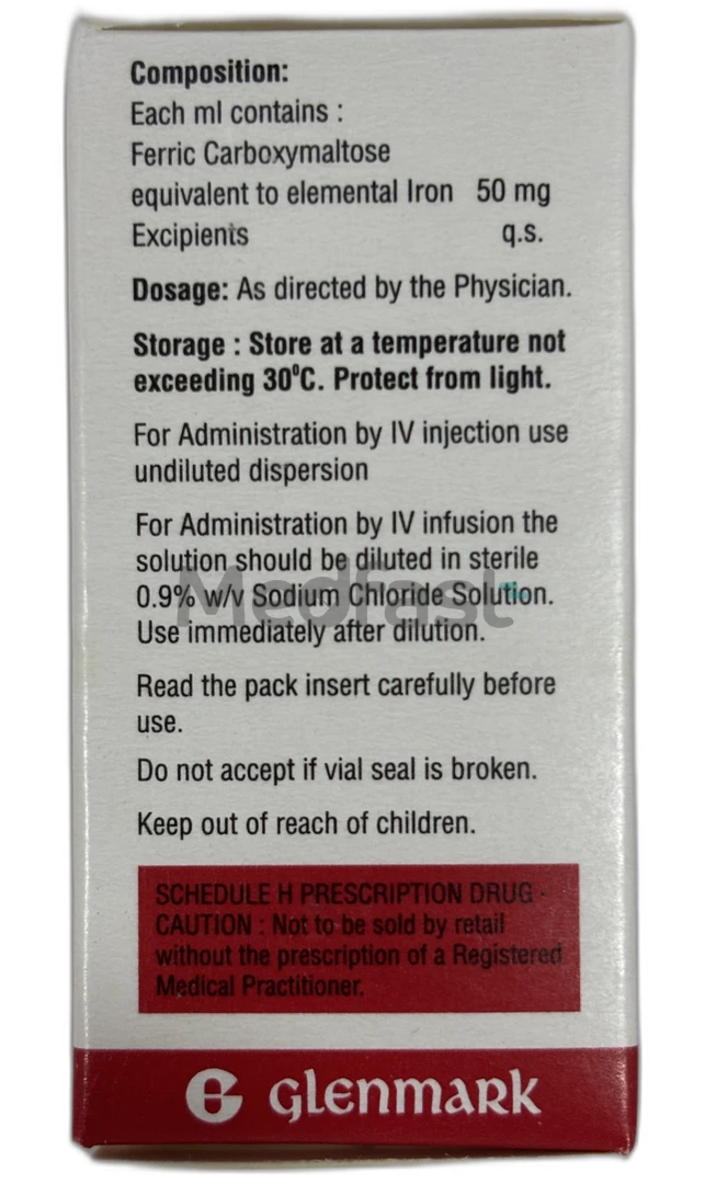 Glenferr FCM 500mg Injection is a combination of vital vitamins and minerals that significantly support the health of pregnant women and those suffering from iron and folate deficiencies. This formulation aids in the prevention and treatment of common issues like anaemia while enhancing overall vitality and energy.