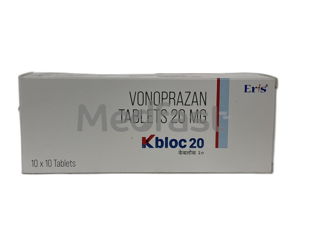 Kbloc 20 Tablet is a medication used to treat stomach ulcers and gastroesophageal reflux disease (GERD). It works by blocking the proton pumps in the stomach lining that produce acid. By reducing the amount of acid, it helps to heal ulcers and alleviate symptoms of GERD, such as heartburn and acid reflux.
