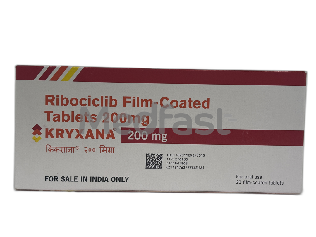 Kryxana 200mg Tablet is an anticancer medication formulated with the active ingredient ribociclib. It belongs to a class of drugs known as CDK4/6 inhibitors and is primarily used in the treatment of hormone receptor-positive, HER2-negative breast cancer in women whose cancer is locally advanced or has metastasized to other parts of the body. It is generally prescribed alongside hormone therapies such as letrozole or fulvestrant for greater therapeutic effect.