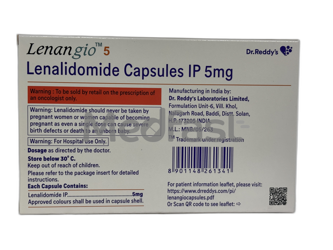 Lenangio 5mg Capsule belongs to a specific group of medicines that profoundly affect how your immune system functions. This medication is primarily utilized in the effective treatment of both multiple myeloma and myelodysplastic syndrome.