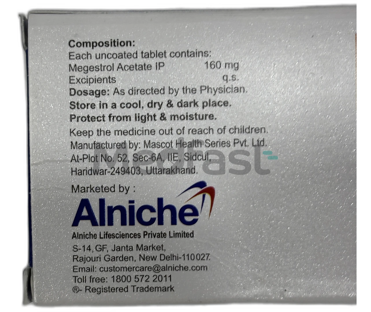 The active ingredient in Megahenz-160 Tablet is ‘Megestrol’, which falls under the category of ‘Progestogens’. It functions similarly to the female hormone ‘progesterone’. This medication disrupts the production or action of hormones that contribute to cancer growth. Consequently, it aids in slowing the advancement of cancer and alleviating associated symptoms.