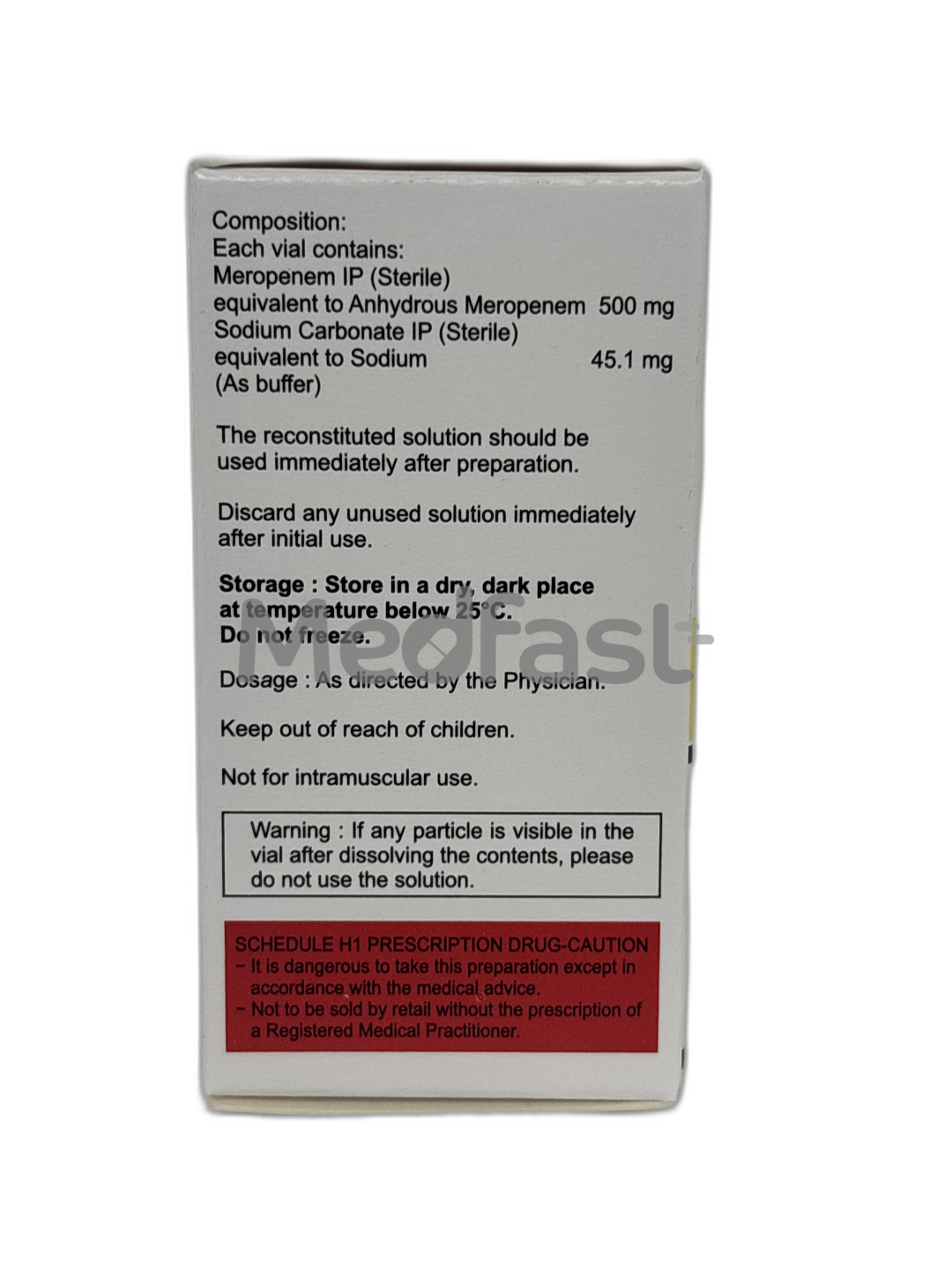 Merohuge-500 is administered intravenously, and its broad-spectrum action makes it especially useful against multi-drug resistant Gram-positive and Gram-negative bacteria.