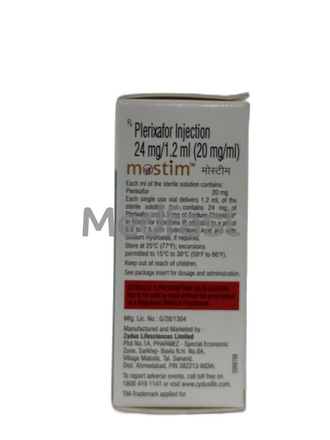 Mostim 24mg injection is an antineoplastic containing the active ingredient Plerixafor. It is primarily used in the process of collecting, storing, and transplanting blood stem cells. It also finds application in managing conditions such as lymphoma (white blood cell cancer), multiple myeloma (plasma cell cancer in bone marrow), or a solid tumor.