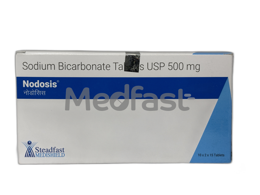 Nodosis 500mg tablet is an antacid containing the active ingredient Sodium Bicarbonate, belonging to the class of alkalinizing agents. It is a water-soluble substance that provides quick relief from stomach acidity and heartburn caused by excess stomach acid. It effectively reduces the symptoms of stomach acidity, offering rapid relief and comfort.