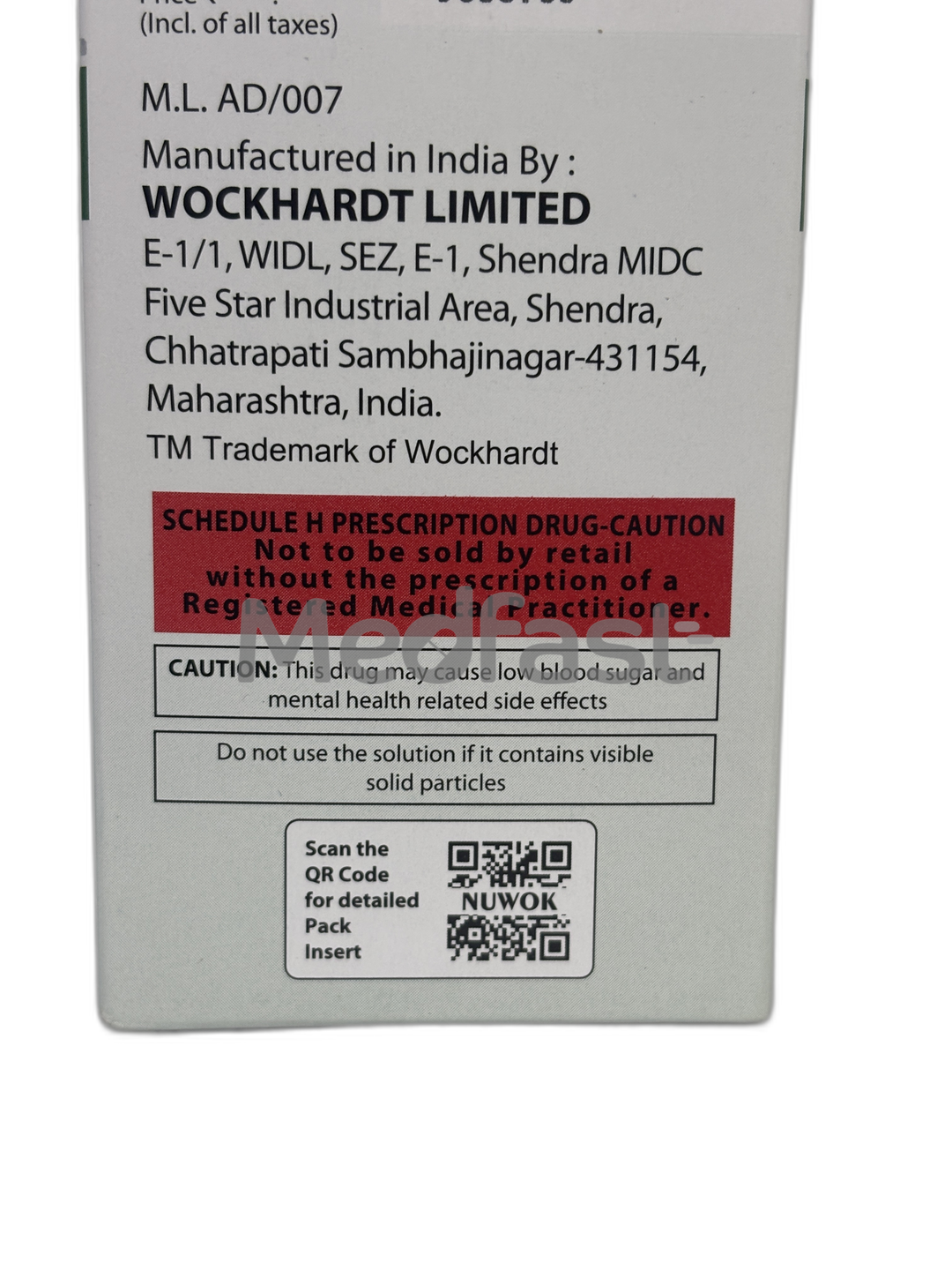 Nuwok 800 mg Injection 100 ml belongs to the group of medicines called antibiotics used to treat acute bacterial skin and skin structure infections, including diabetic foot infections and bacteraemia (presence of viable bacteria in the bloodstream). Nuwok 800 mg Injection 100 ml should only be used to treat bacterial infections and not viral infections.