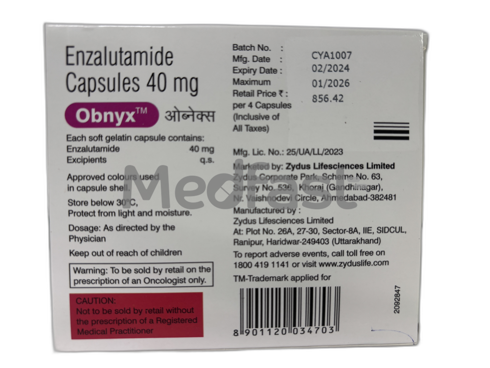 Obnyx Capsule is a medication primarily prescribed for the treatment of prostate gland cancer. It may also be utilized to address other medical conditions, as specifically determined by your attending physician. The core mechanism of this capsule involves effectively blocking the detrimental effects of male hormones, such as testosterone, which often fuel the growth of prostate cancer cells.
