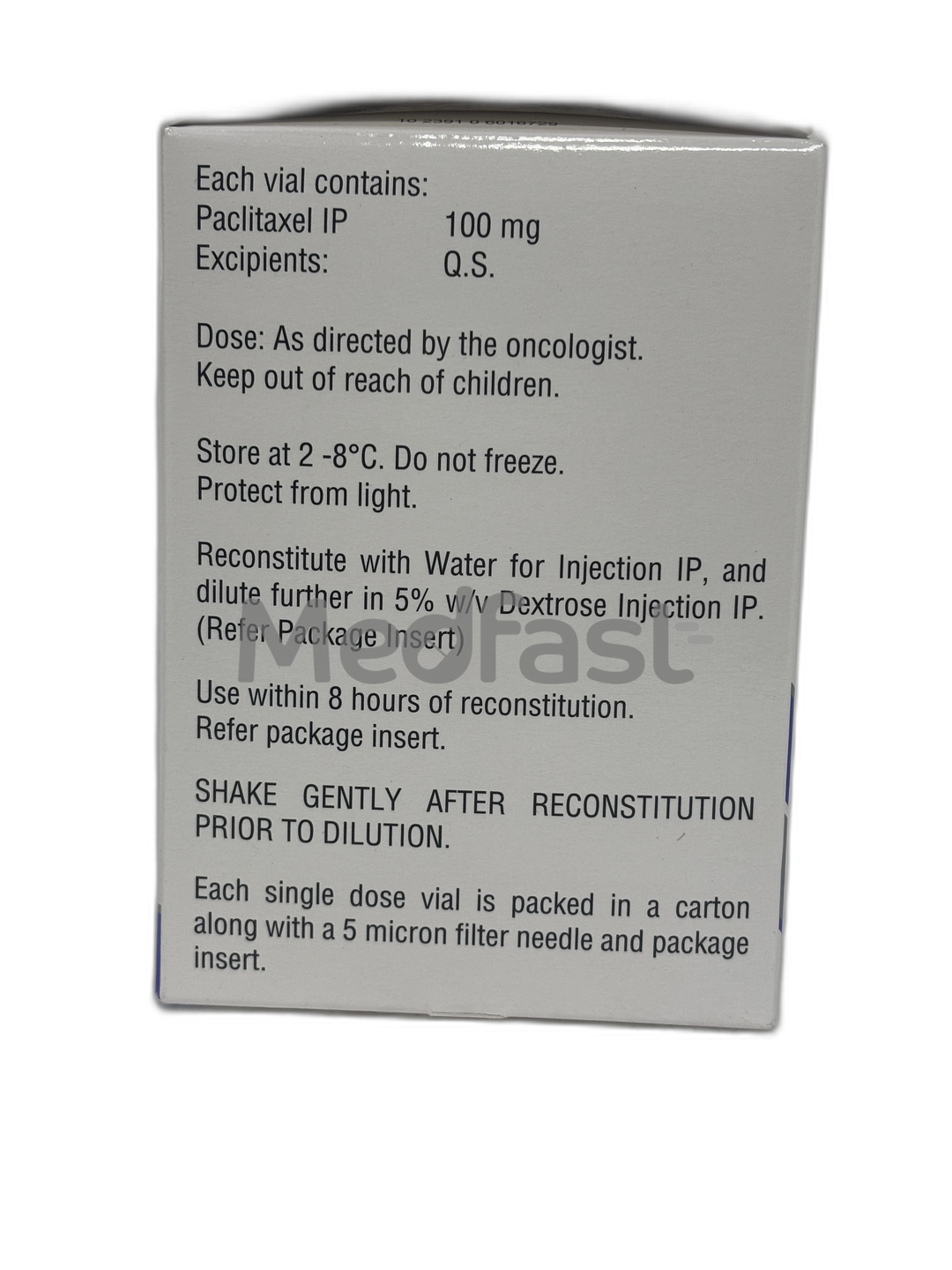 Pacliaqualip 100 mg Injection is a chemotherapy medication used in the treatment of various cancers such as breast cancer, non-small cell lung cancer, ovarian cancer, and AIDS-related Kaposi’s sarcoma. It works by interfering with the growth and division of cancer cells, ultimately slowing or stopping their spread throughout the body. This injection can be used alone or in combination with other anticancer therapies, depending on the treatment plan your doctor prescribes.
