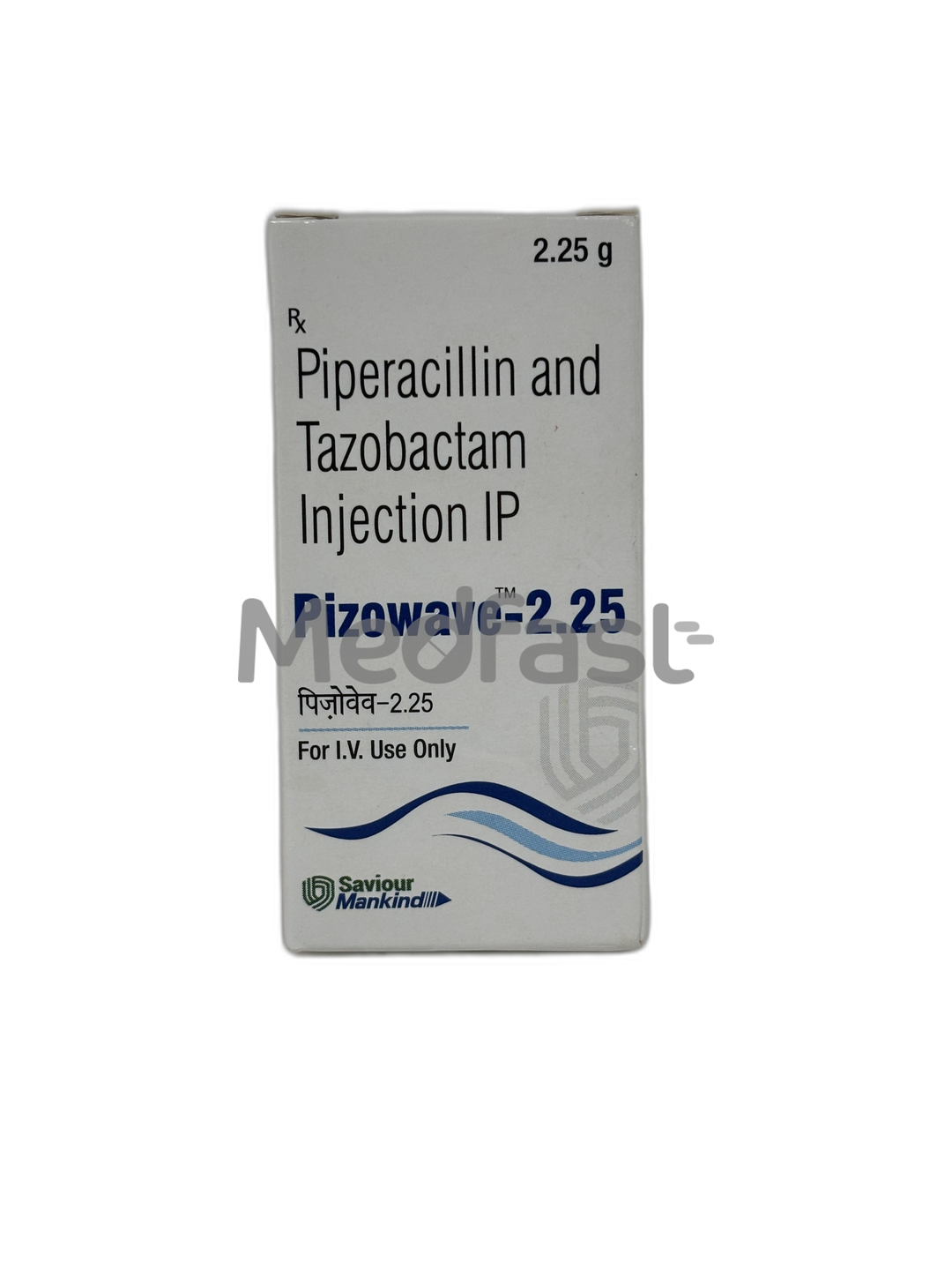 PIZOWAVE 2.25 INJECTION is an antibiotic that combines Piperacillin and Tazobactam. It is used to treat a variety of bacterial infections, including lower respiratory tract infections (like pneumonia and acute bacterial exacerbations causing breathing difficulties), urinary tract infections, pyelonephritis, skin infections, abdominal and biliary tract infections, female pelvic infections (such as postpartum endometritis or pelvic inflammatory disease), bacteraemia, and bacterial meningitis in infants and children. It is also used in conjunction with other antibacterial agents to manage neutropenia caused by bacterial infection.