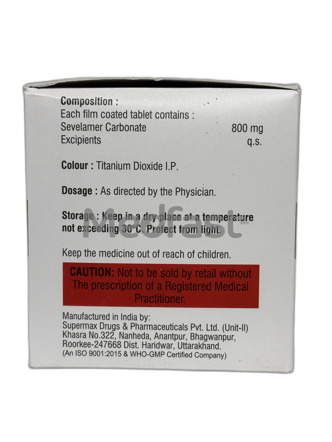 Additionally, you should inform your doctor if you currently have bowel inflammation or have had a major stomach or bowel surgery in the past. Sevom 800mg Tablet is not recommended for children under six years old due to the lack of sufficient studies on its safety and effectiveness in that particular age group. Finally, if your doctor has previously advised you about a sugar intolerance, please consult your doctor before taking this medication, as it contains lactose.