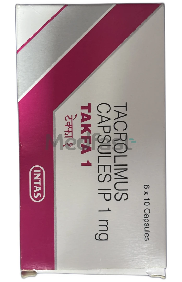 Takfa 1 Capsule contains Tacrolimus, which functions by inhibiting the activity of T and B lymphocytes (immune system cells) that typically attack foreign invaders and protect the body against foreign cells and infections. Consequently, it prevents organ rejection in transplant recipients and aids the body in accepting the new organ.