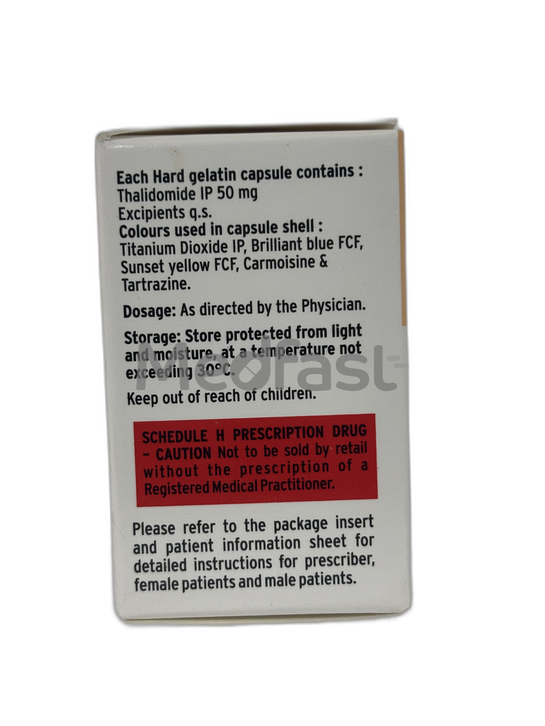 Thalix 50 Capsule is a medication utilized in the comprehensive treatment of multiple myeloma and lepra reaction. This medicine belongs to a specific group of medications that significantly affect how your immune system works.