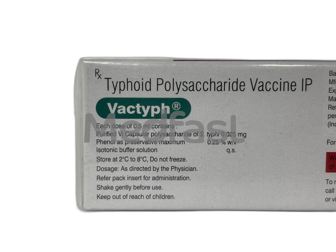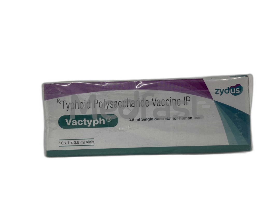 Vac-typh injection contains active components called as purified Vi capsular polysaccharide of Salmonella typhi (Ty 2 strain). It is a preventive measure used to protect against typhoid fever, a bacterial infection caused by Salmonella Typhi. Typhoid fever is typically contracted by consuming contaminated food or water. Vaccinated individuals are less likely to become infected with S. Typhi, which can help reduce the transmission of the bacteria within communities and prevent outbreaks.