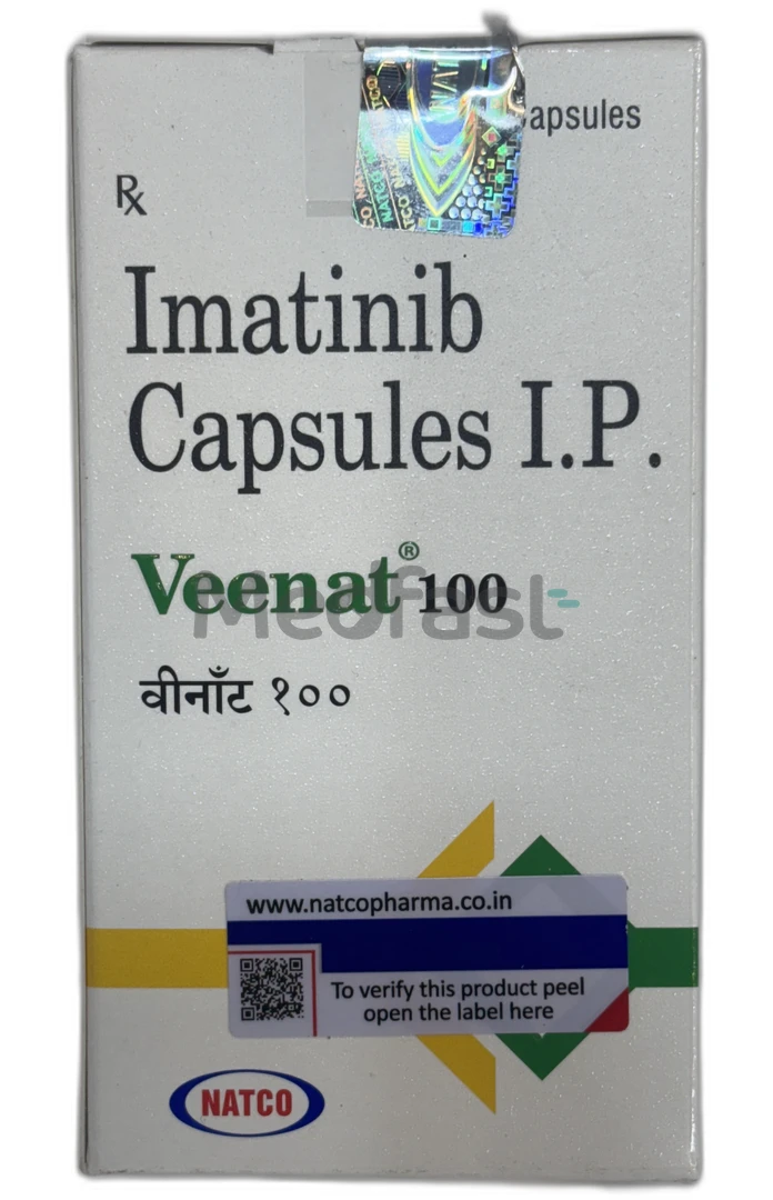 Veenat 100 Capsule is classified as an ‘anti-cancer medication’ and is primarily utilized for the treatment of various cancer types. It is effective against blood cancers such as chronic myeloid leukaemia and acute lymphocytic leukaemia, as well as gastrointestinal stromal tumours. Cancer arises from genetic alterations that lead to uncontrolled cell division and the invasion of surrounding tissues. There are over 100 different cancer types, including blood cancer, lung cancer, and breast cancer.