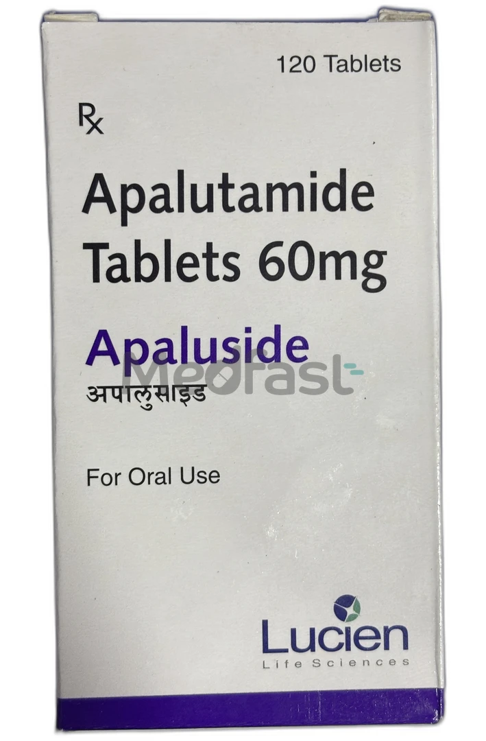 Apaluside 60 Tablet is an anti-androgen medication utilized for treating prostate cancer. Prostate cancer originates in the cells of the prostate gland in men. Symptoms may encompass difficulties in urination, pain, numbness, and more. Apaluside 60 Tablet is indicated for metastatic castration-sensitive prostate cancer as well as non-metastatic castration-resistant prostate cancer.