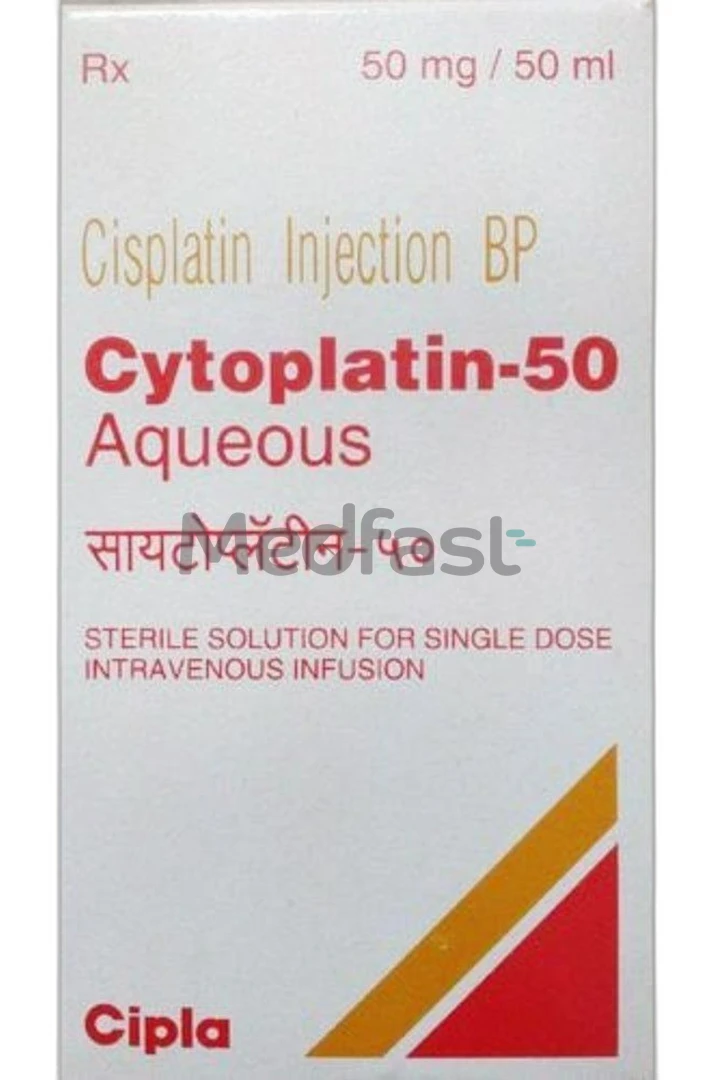 Cytoplatin 50mg injection is classified as an alkylating agent. This antineoplastic medication contains Cisplatin as its active ingredient. It is used to treat specific types of cancer, including testicular, ovarian, bladder, lung, cervical, and head and neck epithelial tumors, either alone or in conjunction with radiotherapy.