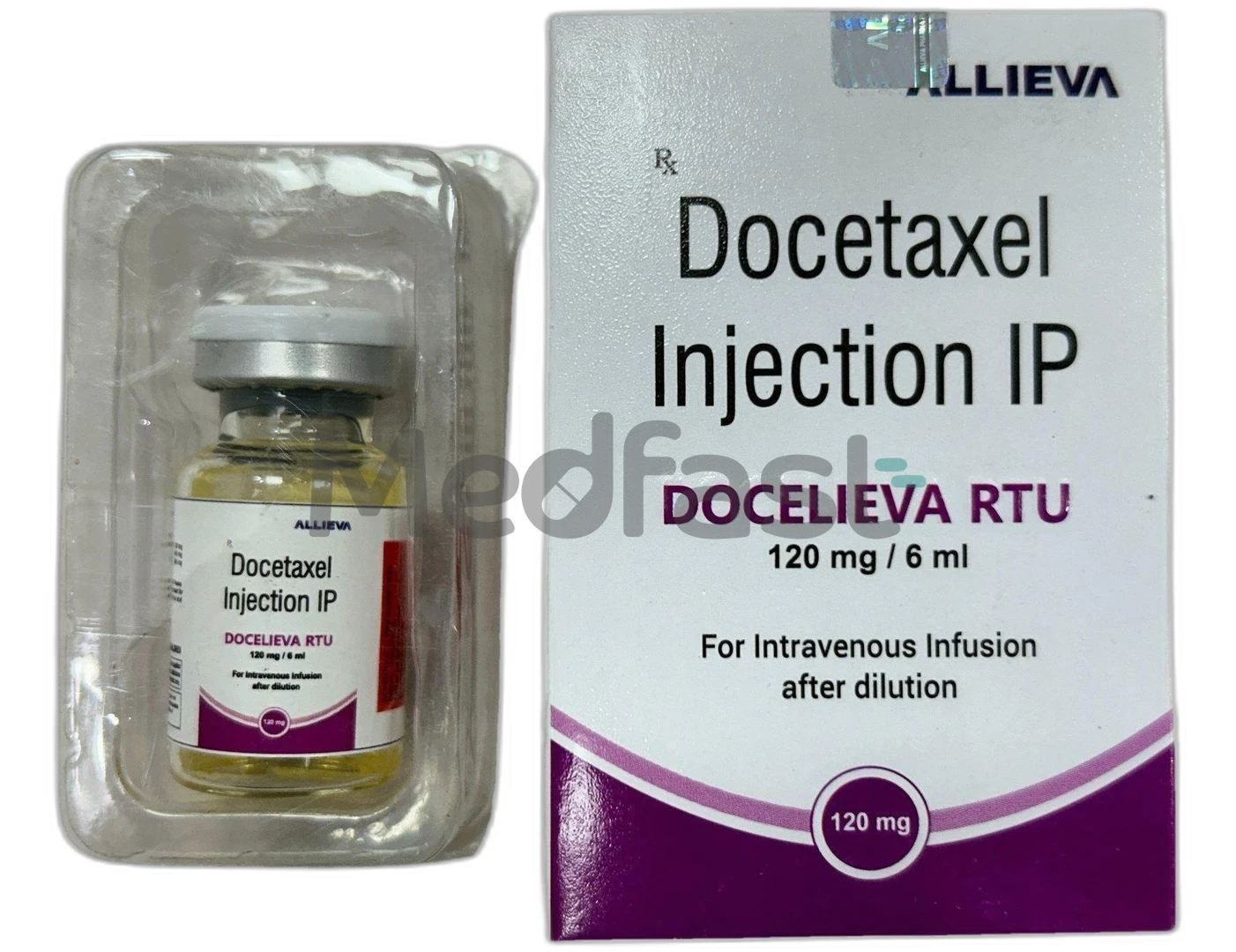 Docelieva 120mg Injection contains docetaxel as its active ingredient, which is classified as a taxoid anticancer medication. This chemotherapy drug is utilized for the treatment of various cancers, including breast, prostate, non-small cell lung, stomach, and head and neck cancers. It can be administered alone or in conjunction with other anticancer therapies.