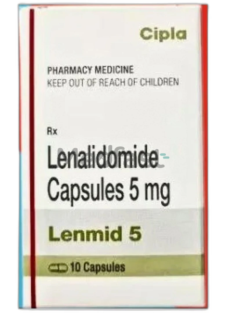 Lenmid 5mg Capsule is classified as an Immunomodulatory agent. It contains Lenalidomide as its active ingredient. This medication is prescribed for adults suffering from multiple myeloma, mantle cell lymphoma, myelodysplastic syndrome, and follicular lymphoma. Multiple myeloma is characterized by the malignant growth of plasma cells in the bone marrow, where these cells proliferate uncontrollably. Although this cancer is not curable, its symptoms can be managed. Myelodysplastic Syndrome encompasses a range of blood and bone marrow disorders that lead to the production of abnormal blood cells that do not function correctly. Mantle cell lymphoma is a rarer form of cancer that impacts the lymph nodes, while follicular lymphoma is a slow-progressing cancer affecting B cells.