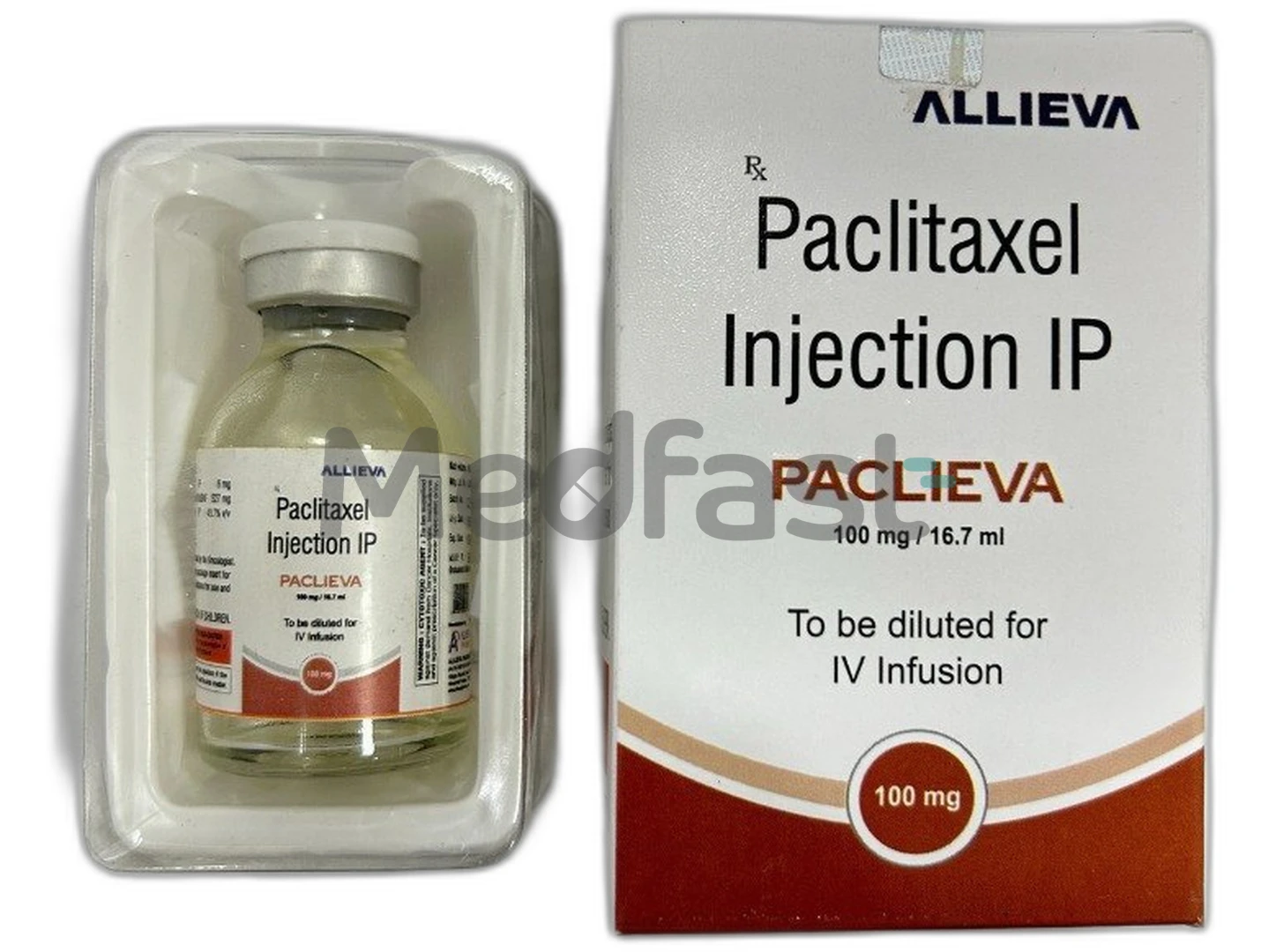 Paclieva 100mg Injection is a chemotherapy drug that contains the active ingredient paclitaxel. It is utilized for the treatment of breast cancer, non-small cell lung cancer, ovarian cancer, and Kaposi’s sarcoma associated with AIDS (Acquired Immuno-Deficiency Syndrome). Cancer is characterized by the rapid and uncontrolled division and growth of cells. This medication is not advised for adolescents and children under 18 years of age.