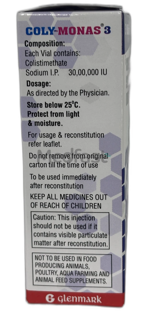 COLYMONAS ViaL 3ML INJECTION is classified as an antibiotic and is utilized for treating severe bacterial infections. A bacterial infection occurs when harmful bacteria proliferate within the body, leading to illness. Such infections can affect any area of the body and can multiply rapidly. It is important to note that COLYMONAS Vial 3ML INJECTION is ineffective against viral infections.