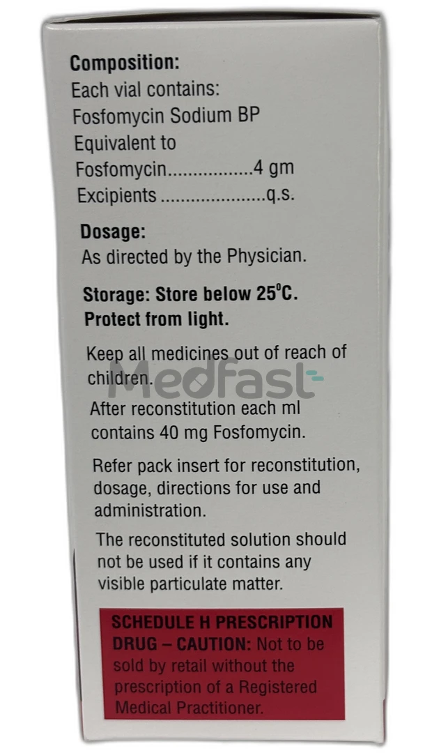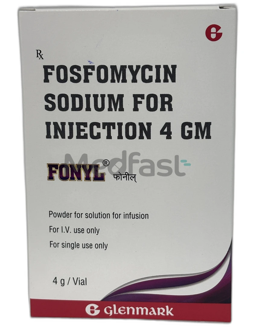 Fonyl 4gm Injection is classified as a phosphonic antibiotic, with Fosfomycin as its active ingredient. It is primarily utilized to treat bacterial infections, especially uncomplicated urinary tract infections (UTIs) in women caused by bacteria that are sensitive to it. This medication is effective against a broad spectrum of both gram-negative and gram-positive bacteria. Additionally, it is employed to prevent potential infections prior to prostate surgeries in adult males. Administering this drug before surgery can significantly lower the risk of infections after the procedure.