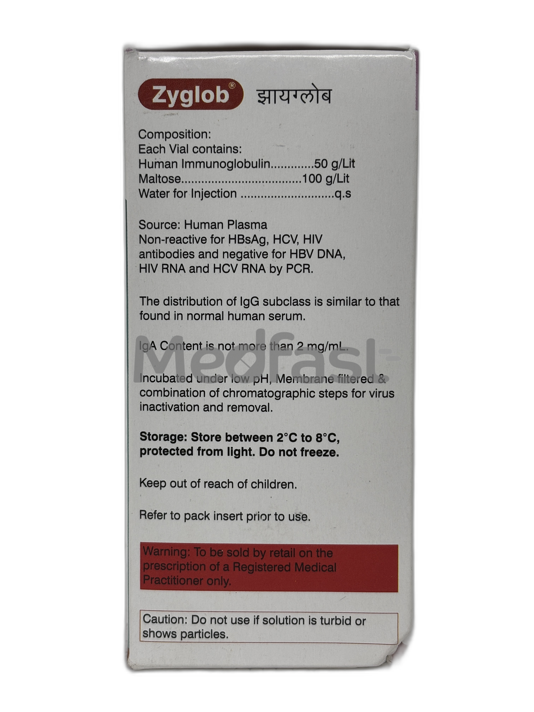 Zyglob 5gm Injection has demonstrated effectiveness in preventing infections in bone marrow transplant patients over 20 years of age during the initial 100 days post-transplant. It is also utilized in treating patients whose antibody-forming capacity is severely impaired, placing them at a higher risk of infections. Essentially, Zyglob 5gm Injection provides antibodies that your body is unable to produce sufficiently on its own, thus enhancing your ability to combat infections. This therapy is suitable for both children and adults. It is administered as an injection, and your doctor will monitor you for a period after its administration to check for any side effects.