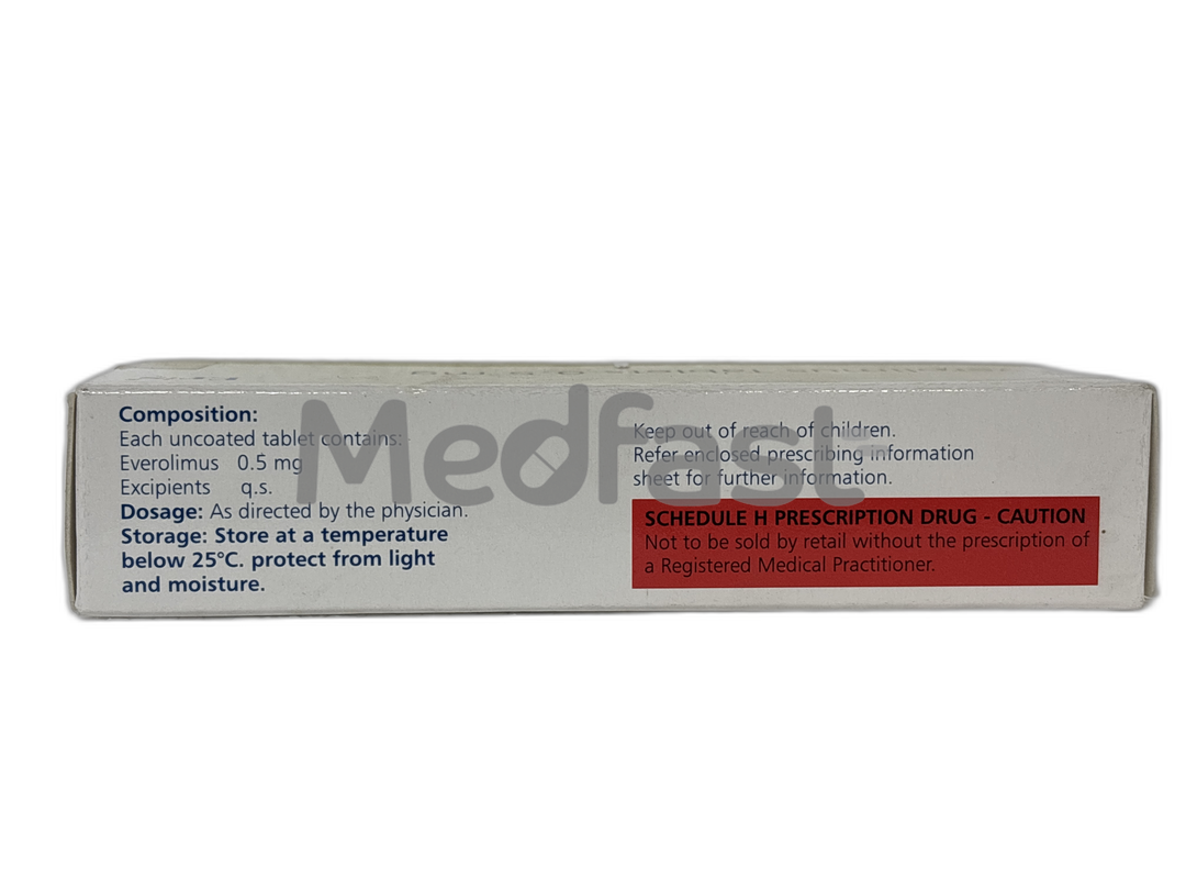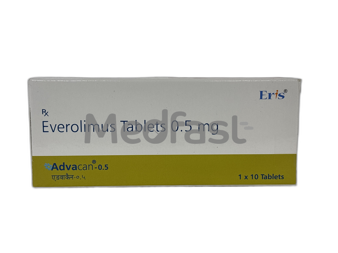 Advacan 0.5mg tablet inhibits the activity of a protein called mammalian target of rapamycin (mTOR), which regulates cell growth. This drug can slow the growth of abnormal cancer cells by blocking the mTOR protein and helps to reduce the size of tumours and improve outcomes in patients.