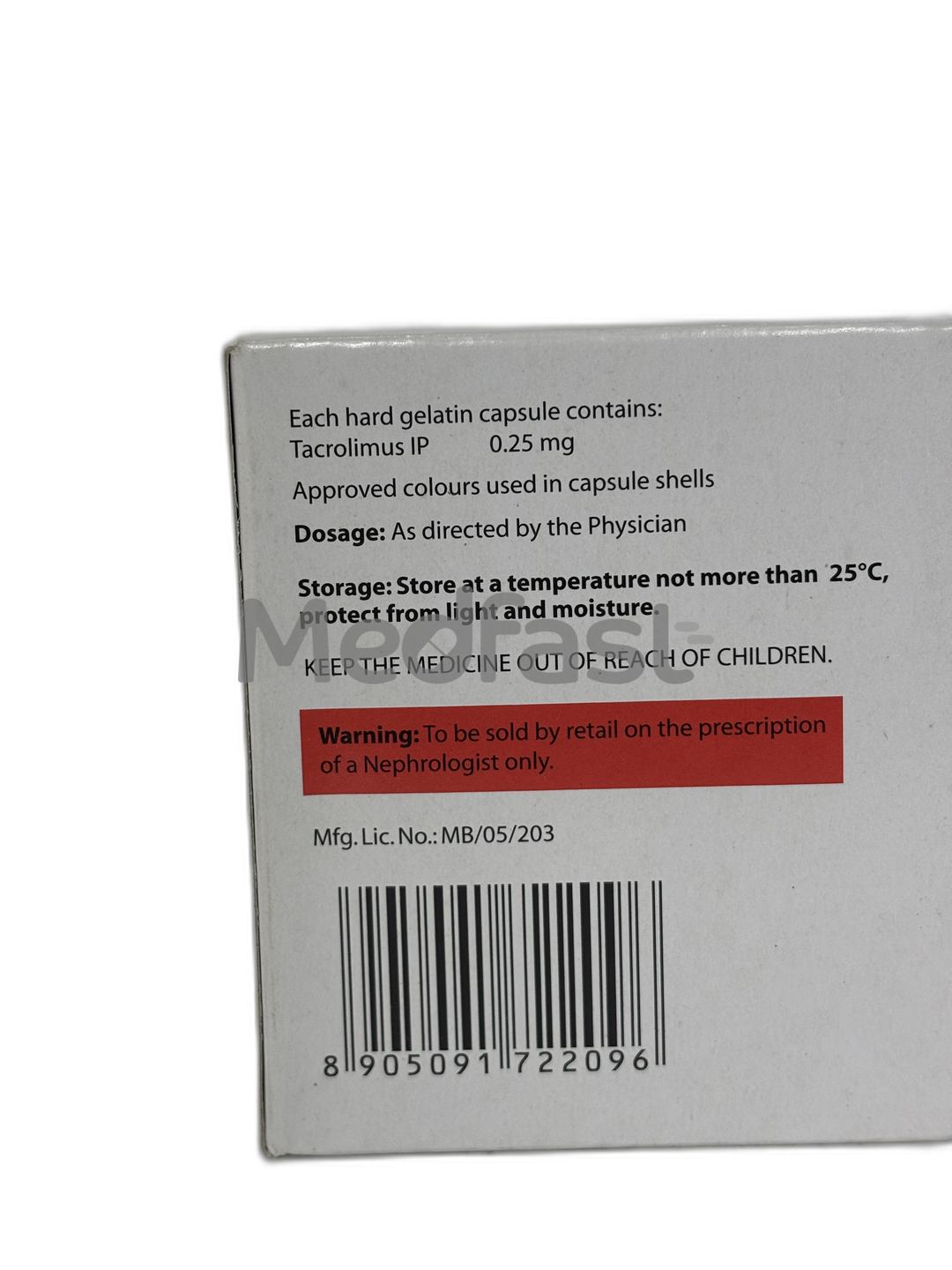 Pangraf 0.25 mg Capsule contains Tacrolimus, an active substance classified as an immunosuppressant and belonging to the calcineurin inhibitors group of medications. Its primary use is in conjunction with other medicines to prevent organ transplant rejection in individuals who have undergone a liver, kidney, heart, or other organ transplant. It works by controlling the body’s immune response, thereby enabling the acceptance of the transplanted organ.